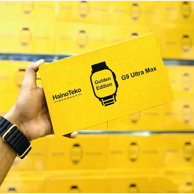 ✅Model Haino Teko G9 Ultra MAX ✅Item Condition New ✅Colour Black With Golden Edition ✅Connectivity Bluetooth ✅Screen Size 45 mm ✅Waterproof Yes ✅Battery Capacity 45days Standby ✅Bluetooth Call Yes ✅Strap Double ✅Original Made In Germany