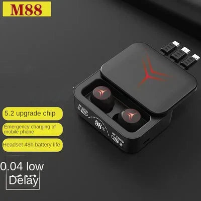 The M88 Plus Wireless Gaming Earbuds are TWS (True Wireless Stereo) earbuds with Bluetooth 5.2 or 5.3 connectivity, offering low-latency gaming and a Hi-Fi stereo sound experience. They feature an ergonomic, in-ear design, smart touch controls, and are waterproof for use during physical activity. The package includes an LED display charging case that doubles as a 1200mAh power bank, and they are compatible with most devices.